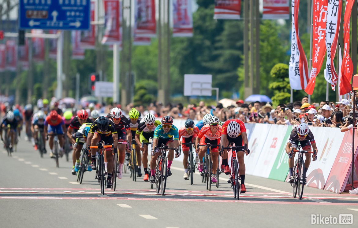 比赛如期来到最后的大集团冲刺,中间也多次出现摔车。但是诺飞客彦豪车队还是在最后开起了一列5人的火车,确保冲刺主将巫帛宏能够有一个最好的冲刺位置。胡浩的位置非常不好,但是身为冲刺手的夏威硬是依靠一己之力把胡浩带到了前面,这个突然的发力也打乱了诺飞客车队的火车计划。提前开冲的胡老板惊险获得赛段冠军,也几乎确保了个人总冠军( 如果明天放不走兔子集团)。