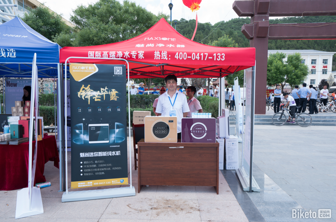 ▲比赛现场有很多赞助品牌进行展示。其中值得一提的是,来自广东的魅尚净水器。在开幕式现场,魅尚的领导向富县政府代表移交了一批价值10万的净水器,这批净水器将安装到富县的福利院和学校,改善当地的饮水情况。可谓是从另一方面,践行着绿色的理念。