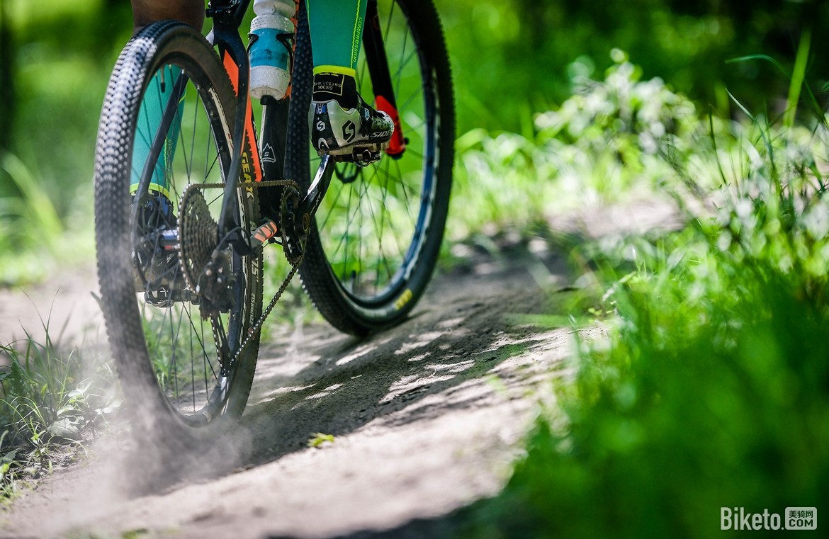 ▲头顶烈日依然骑行,这就是坚持的力量。而这条赛道对于很多平时并不怎么越野的车手来说,确实是非常大的考验,女子组的车手完赛时间都在1个半小时以上。
