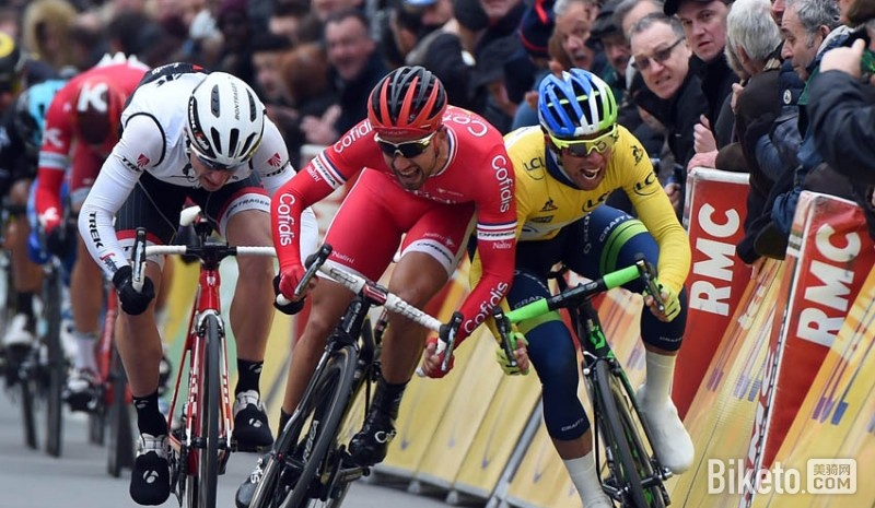 基特尔今年的状态稳定,在环阿布扎比、环加州中均有收成,“鸡腿儿”是否能再现当年(2013、2014)环法的辉煌,还要看他的带冲副将:快步车队的萨巴蒂尼、费尔莫特、特伦汀和斯蒂巴。有了这个阵容,即使基特尔1%的坡都不爬,收获至少一个单站还是有希望的。