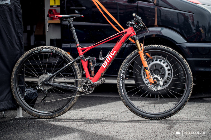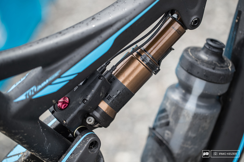 ▲这辆因德冈特的红色战车也是全避震+升降座管;升降座管是来自KS的LEV CI,提供了65mm的行程。毕竟安道尔的赛道不是开玩笑的。