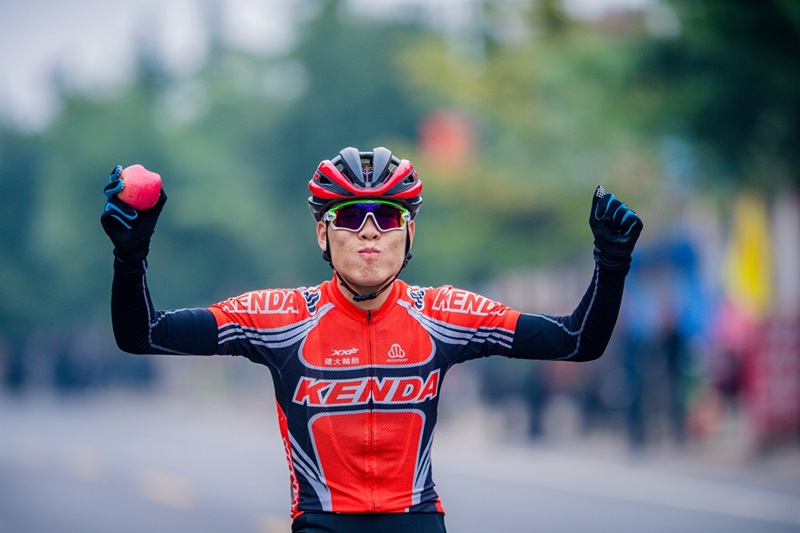▲车手白琛在终点前成功为宜川苹果打了一波广告