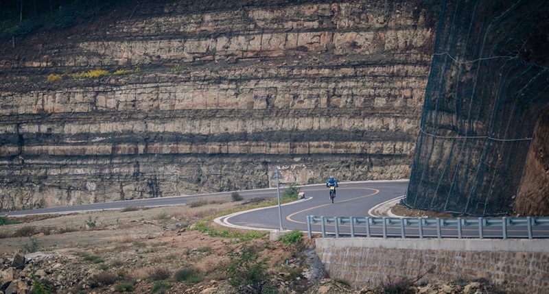 ▲爬坡让车手们耗尽体力,秀美的风光顺便为大家注入了些新的能量