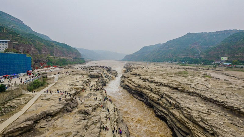 ▲开幕式现场盛况,离舞台不远处就是著名的壶口瀑布