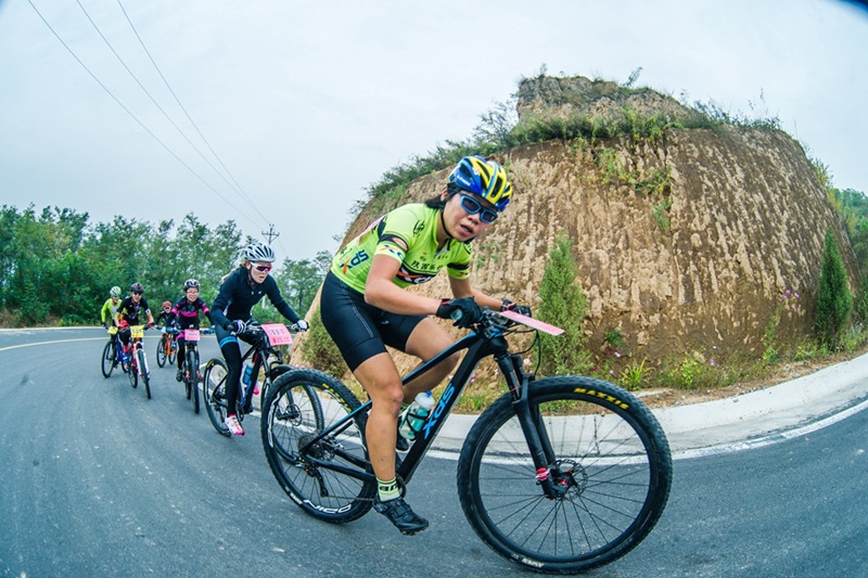 让所有人意想不到的是,刘杨到达爬坡处不久后,三位女车手也开始爬坡。秦子叶、苏悦和洪赛楠的三人组也是超越了不少爬坡较慢的公路车选手。