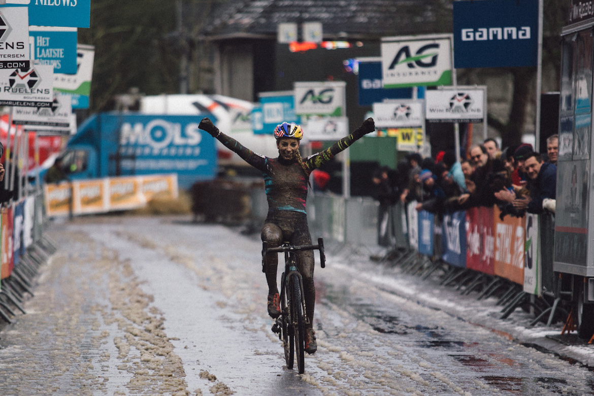 今年二月,这位25岁的法国姑娘与她的新车队CANYON SRAM Racing重返山地赛道。她一步一步从自己以及新团队中获得自信,又重新燃起了对自行车的热情。在本赛季结束的时候,她已经登上了山地世界杯和女子世巡赛的领奖台,并且在山地越野世锦赛凯恩斯站拿到了一枚铜牌。之后Ferrand-Prévot开始谈论起她的公路越野比赛:”在山地赛季之后,我休息了一小会儿,然后我决定我要再次开始我的公路越野赛程。我真的很喜欢这个项目,而且想要在春季古典赛中有好的表现,这对于山地越野和公路比赛都是一个很好的准备。现在我们有了Strade Bianche,对于冬季的公路越野赛将会如虎添翼。“