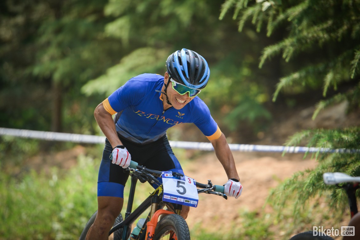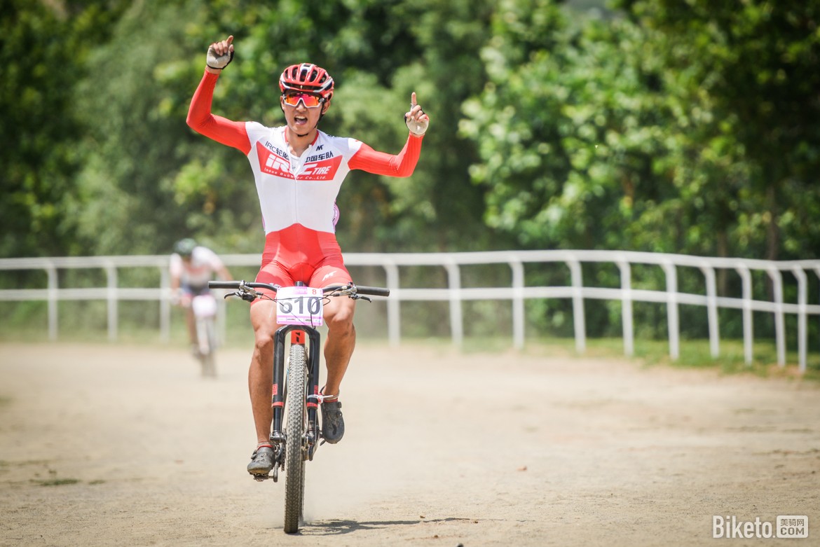 “我来自安徽文达信息工程学院电子商务系。平时在课余时间在学校旁边的紫蓬山训练。大学里只有我一个人骑车,平时在环山路骑4个小时的有氧,越野会去当地的大蜀山骑一条自己划的路线骑三个小时。今天目标是大学生组第一名。 前俩圈一直保持在他前面的位置,我感觉到他下坡和细节处理会比我好。他在爬坡和体能方面会比我差一点,在最后一圈快结束我失误了一下 ,被超了大概几秒的差距。到最后的下坡冲刺 我距离他30米 最后追上冲刺差他0.005秒。这次比的比较失望,不该失误,冲刺也没有冲赢,后面我会加强自己的弯道、下坡的技术。”——苏俊