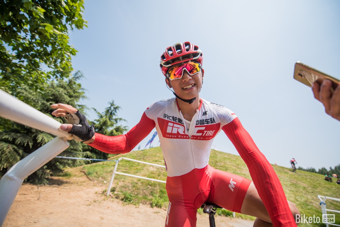“我叫李顺华,来自贵州大学,学习的是绘画专业油画方向,因为热爱自行车,所以就接触竞赛自行车,平时都是和车队里一起在贵州大学的后山树林里进行越野训练,还有每周周四都和各个高校进行环大学城拉练,我们学校骑车的氛围在贵州高校当中是比较好的,因为我们主要任务是以学习为主,所以训练时间那么多,我个人平均一周有四天在训练,平均每天两个小时这样子。其实这次出来的目标是进入前五就好,如愿了,拿了季军,很开心。但有一点点遗憾,发车排到了最后一排,如果我排在第一排发车的话,我感觉我还是能够威胁到第一第二名的名次的,因为我进入越野赛道的时候有很明显堵车感觉。同时经过昨天跟公开组骑的专业赛道还是挺有难度的,而今天大学生组骑的业余赛道难度就减少了很多,但还是由于速度快和大地来了个拥抱,还挺好的,说明还有需要改进和进步的地方。自行车竞赛是出于特别的热爱,同时每趟出来都当作一场旅游,这样挺好的,比如山东这边可以看海而甘肃那边可以看敦煌,感受风土民情,品尝全国各地的美食,本身就是一种收获与快乐,至于名次平时多刻苦一些,认真一些,给他们造成威胁和向公开组的大佬看齐就可以了。其实也是自己给自己在大学的一种小目标,读万卷书,行万里路。”