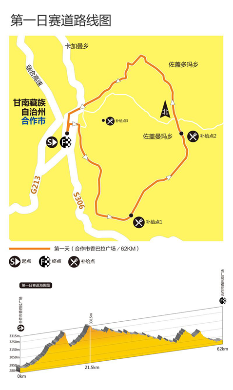 Day1路线介绍:首日为甘南高原风情体验赛,选手们可以完美体验草原地貌,水泥乡道、砂石炮弹路、草地、溪流等多种地貌。