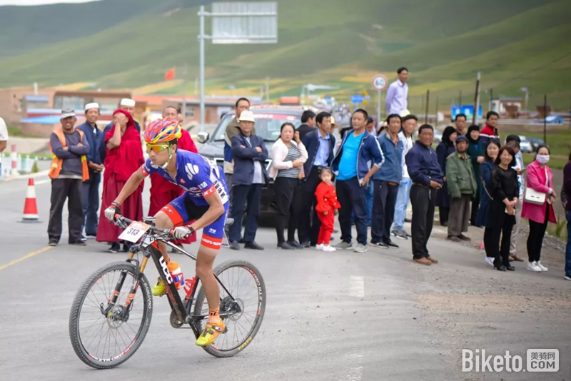 张含在爬坡中领骑