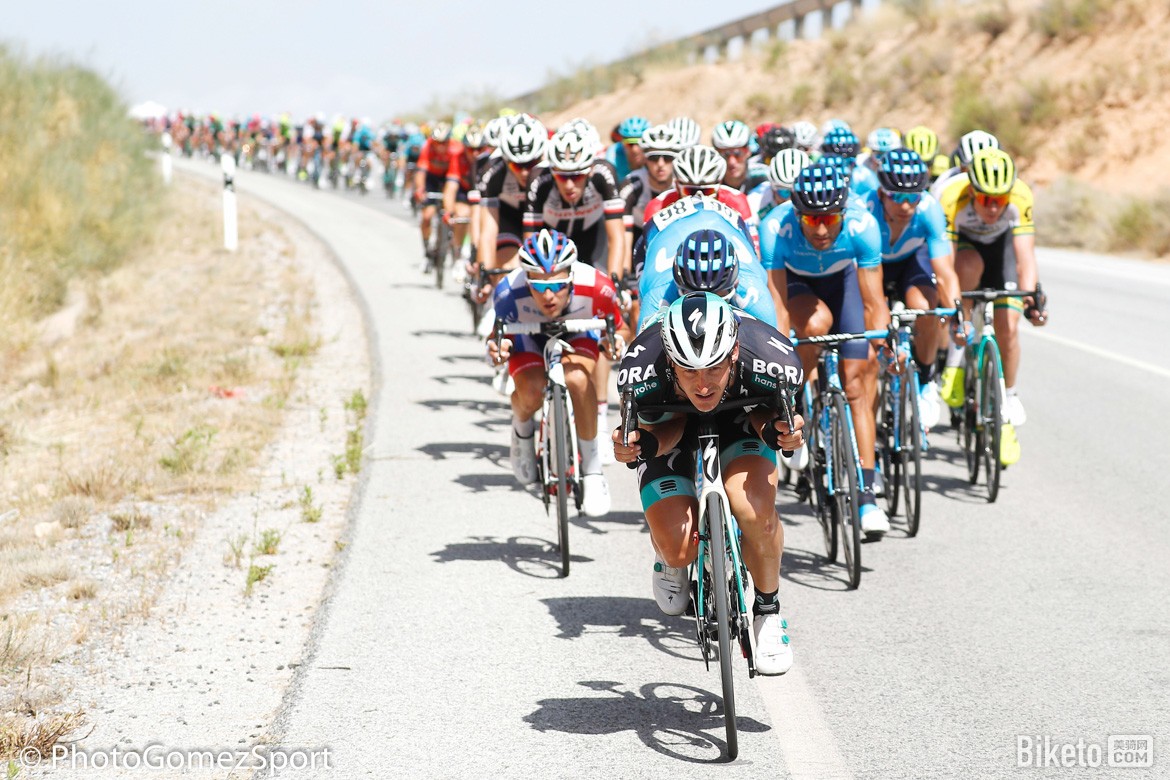 最后十公里继续呈缓上坡的趋势,而且地形更加复杂,有许多狭窄的弯道。许多车手借机进攻,留在前方的人数不断减少至50人以内。终点前8公里,科维亚特科夫斯基(天空)失误而摔车。小埃拉达(科菲迪斯)在最后五公里发动单飞。随后,金塔纳(移动之星)带着小伊萨吉雷(巴林-美利达)、洛佩兹(阿斯塔纳)等车手加速;其他总成绩车手不敢掉以轻心,马上将几人追回。