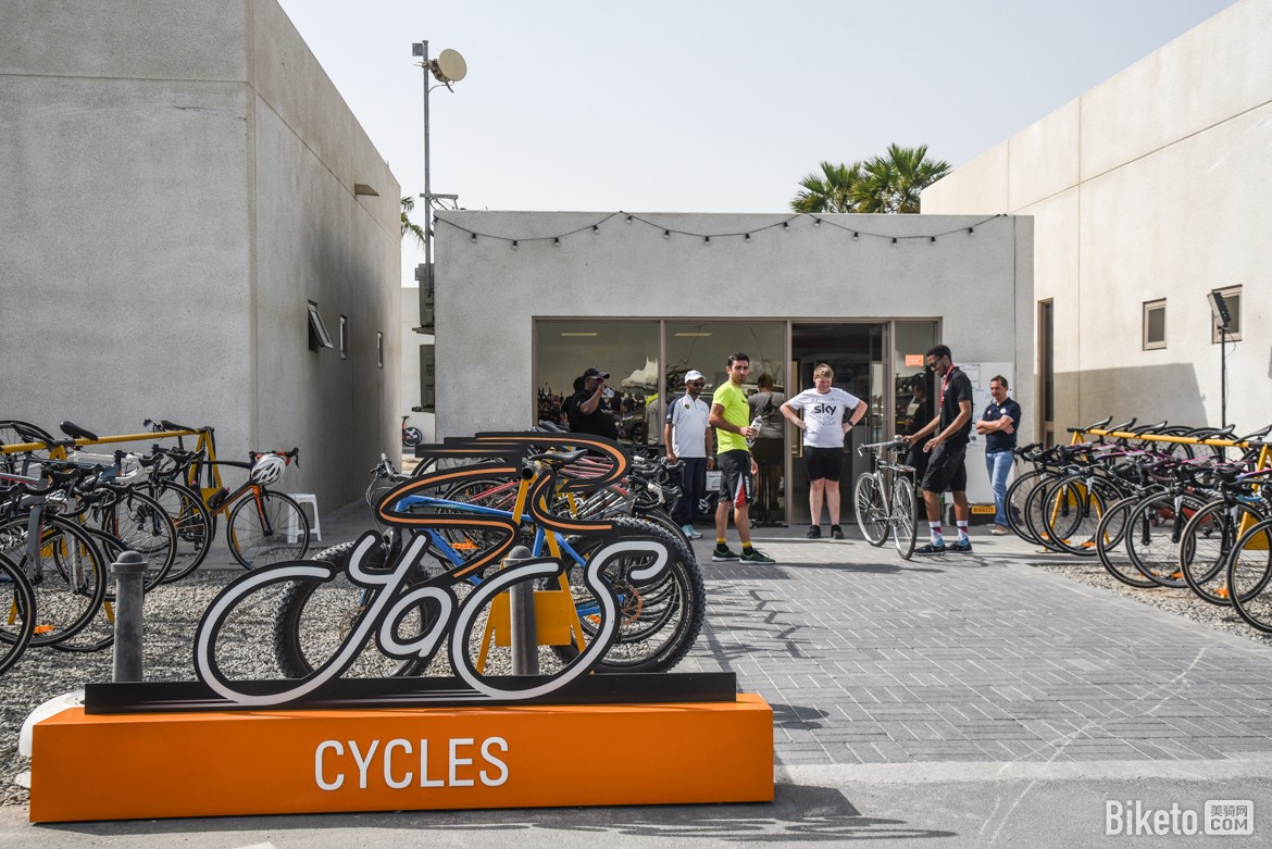 ▲虽然阿布扎比的骑行人口不多,但岛上的自行车店今天还是来了不少车友来看比赛。至于在哈达利亚特岛的骑行体验是怎样呢?美骑的特别记者周铖早已在年初体验过。(导读《成为一名中东选手——阿联酋冬季沙漠骑行》)