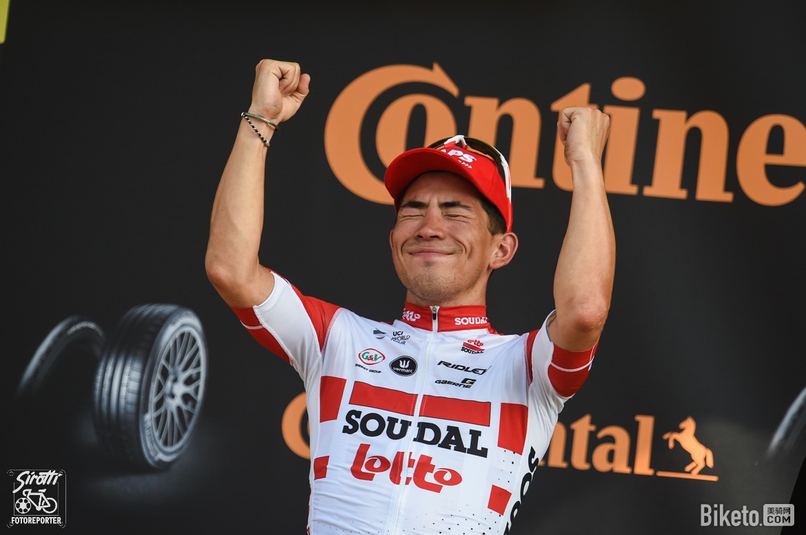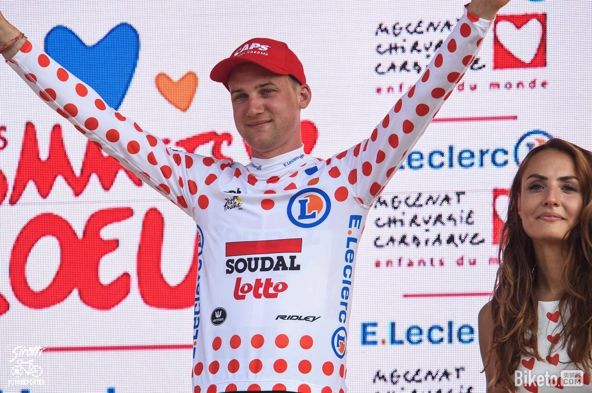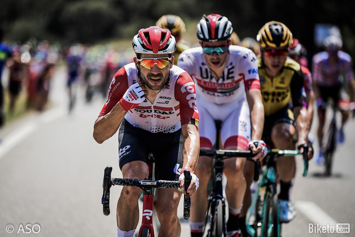 2019年7月23日,环法第十六赛段结束。尤安(乐透-速的奥)在集团冲刺力克维维亚尼(德库尼克-快步)和格鲁内维亨(珍宝-维斯马),砍下第二个赛段冠军。