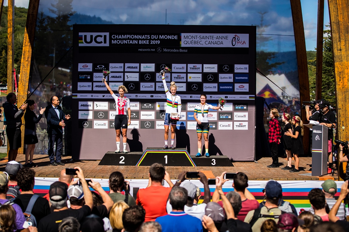 一年一度的山地世界锦标赛在加拿大圣安娜山(mont sainte anne)圆满落下帷幕。尼诺一如既往强势,斩获职业生涯第八个世界冠军,延续山地王者的传奇。女子组今年的彩虹衫大战,异常激烈。曾经的三栖世界冠军(CX、XC、公路)全能女车手波琳(Pauline Ferrand Prevot)伤愈归来,时隔四年终于重回世界之巅!