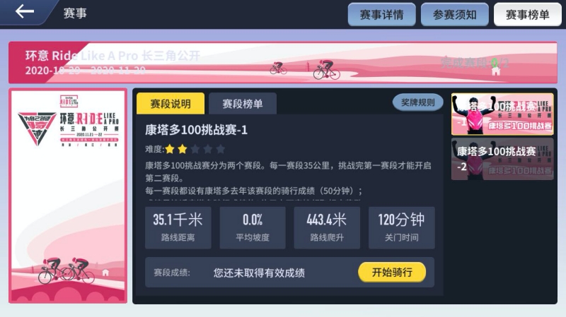 环意 Ride Like A Pro 长三角公开赛 - 康塔多100挑战赛是基于2019赛道的真实数据与冠军 – 传奇车手阿尔伯托·康塔多 – 的真实比赛时间所打造,两赛段共70公里可供挑战。