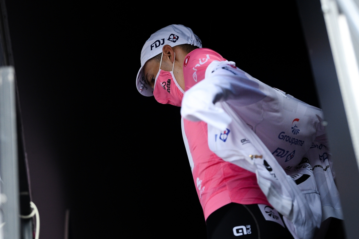 进入今天的第一个爬坡点后,突围集团的车手配合默契,FDJ也限制着主车群的节奏,他们已经落后7分30秒了。不过其间也发生了一个小插曲,西蒙·耶茨(英力士)、丹马丁(以色列创新国度)先后遇到了机械故障,但很快就得到了处理,返回了集团中。在突围集团中,奥利维拉(移动之星)在山顶前发动了一次进攻,令人意外的是,加维里亚(阿联酋航空)显得相对轻松,而其余的突围车手则都有些挣扎。