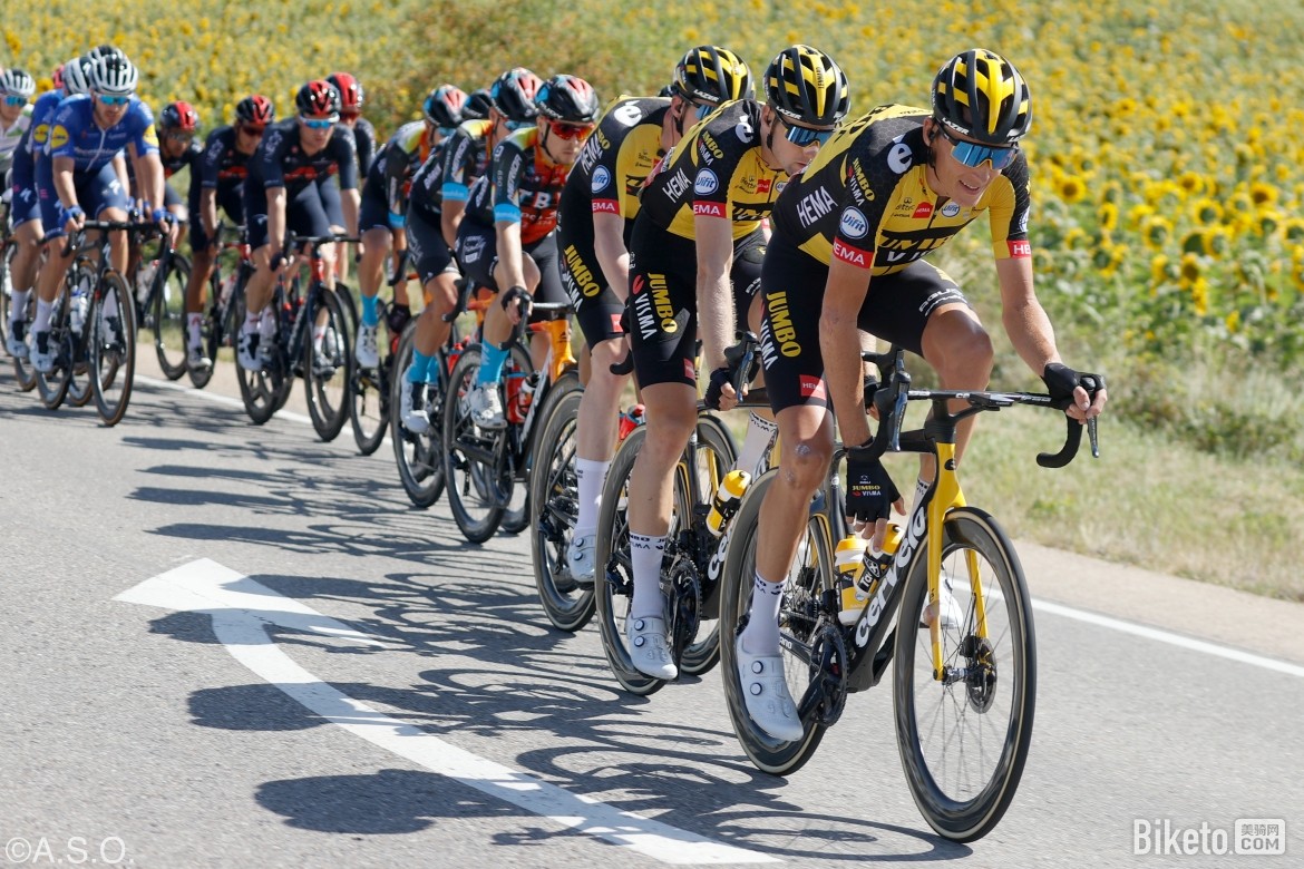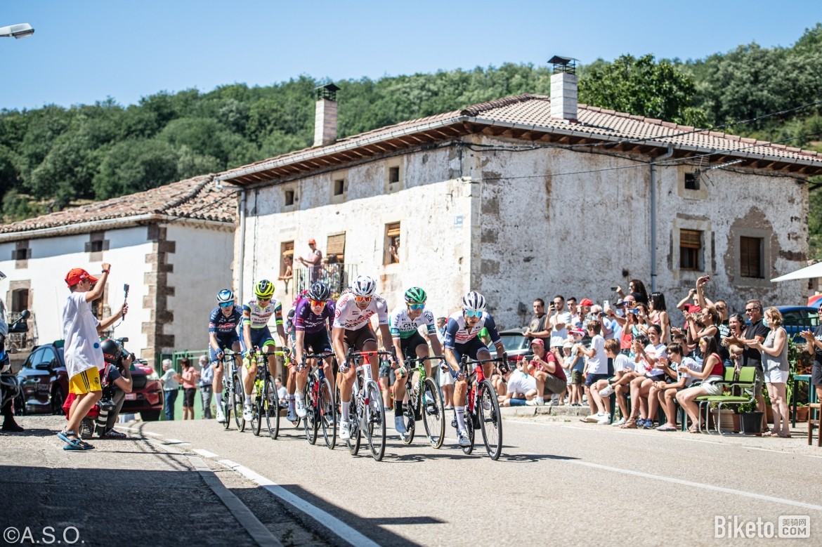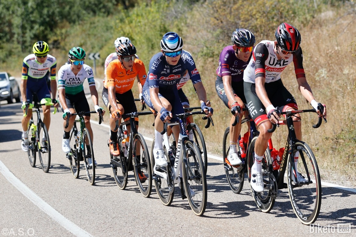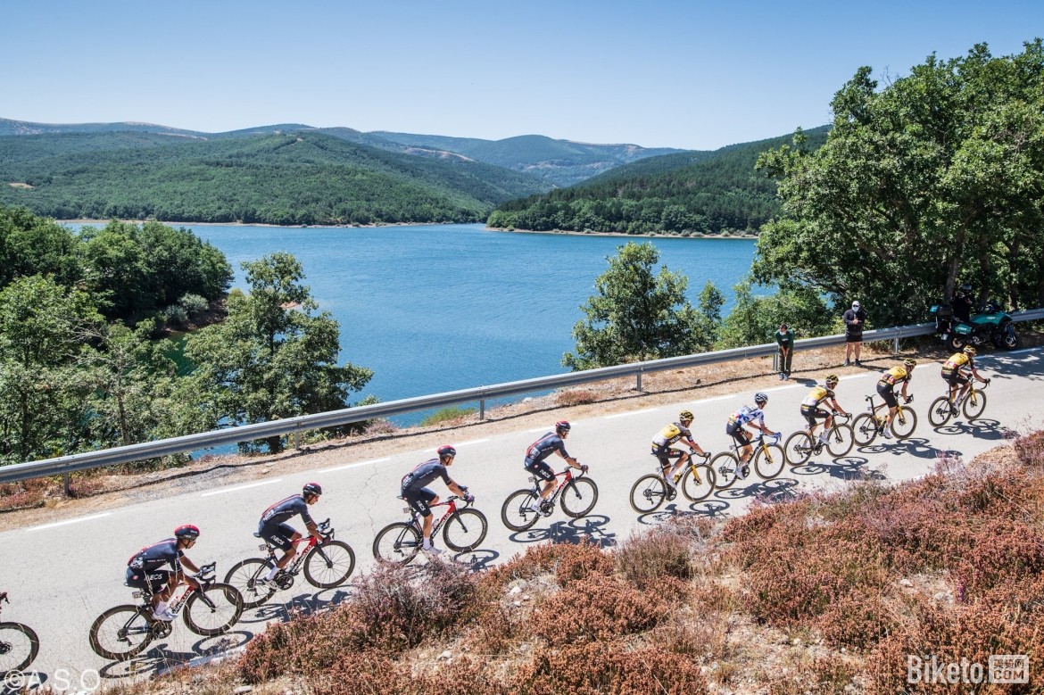 埃利松德带着突围集团通过第一个3级爬坡点,主集团在赫辛克(珍宝-维斯马)的领骑下放缓节奏,在距离终点还有80km时,两个集团的差距上升到9分钟。在这样一个晴朗的日子里,车手们顶着热浪前行,骑行节奏都较为缓慢,他们需要保留体力以应对最后的山顶终点。