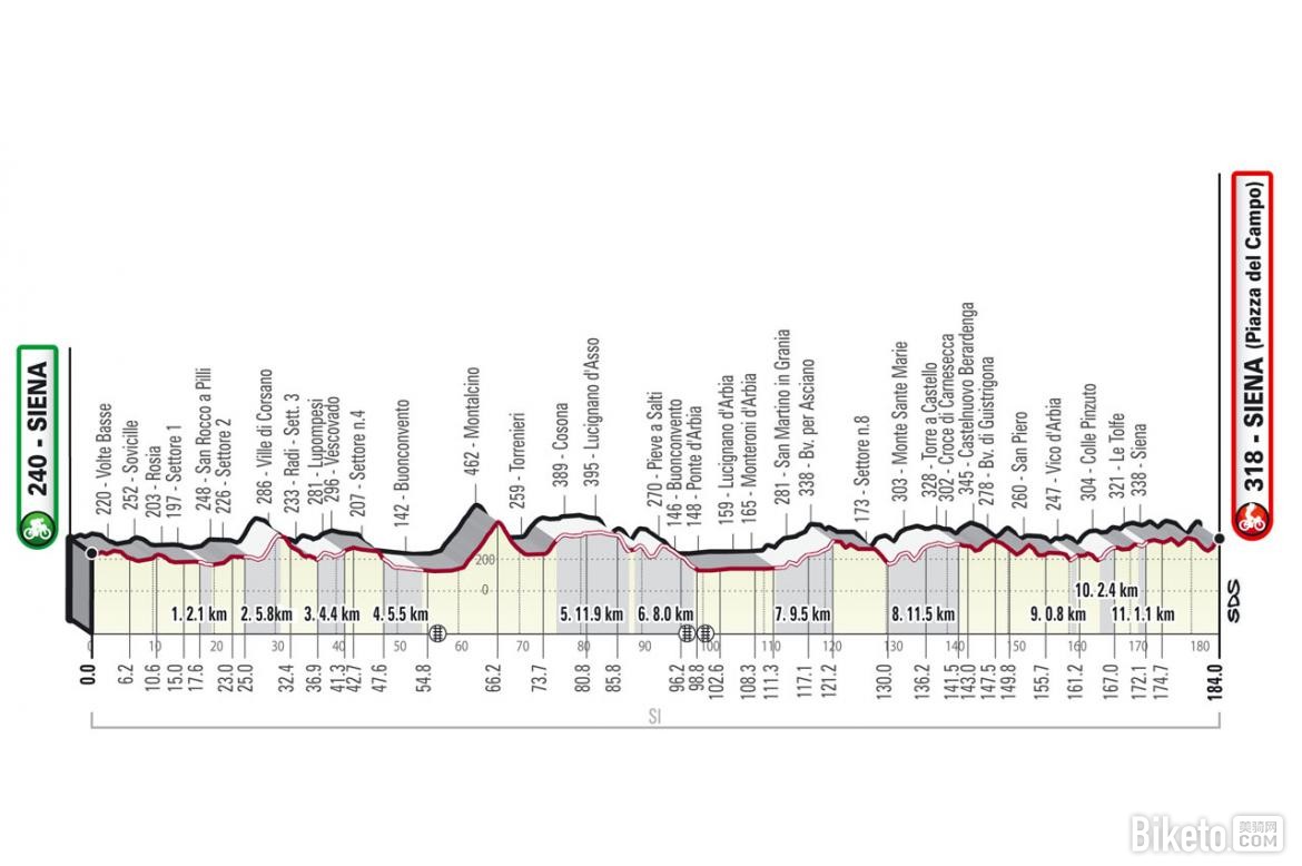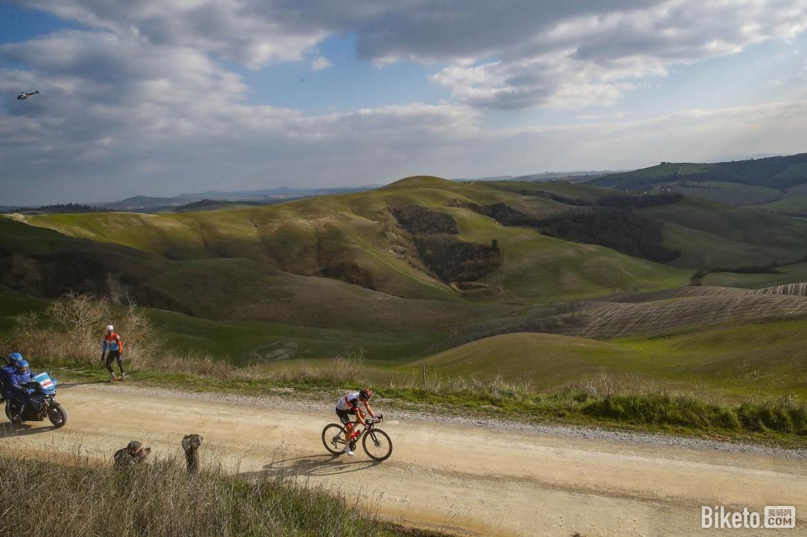 那么白路赛的魅力何在呢?从距离上来说,2022白路赛男子组全长184km,其中包含了11段土路,而且终点还有前一段500m爬坡,最大坡度达到16%。再加上白路赛中那些传统的砾石路,这样的路况设计很适合那些有“受虐”心态的古典赛车手来挑战,,能让他们在这里发光发热,获得荣誉与尊敬,并留下超多精彩的比赛瞬间。