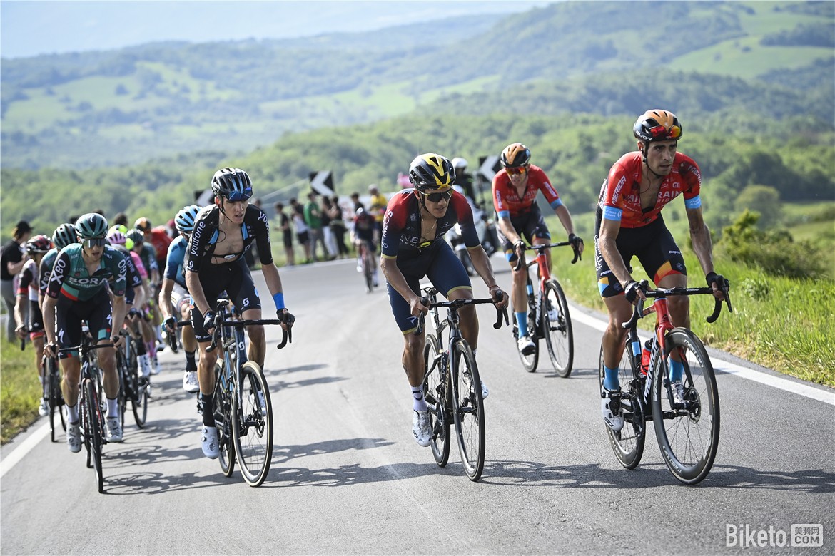 距终点8.6公里,大魔王里奇·波特(英力士)顶在集团前方进行筛选,米克尔·兰达(巴林胜利)与罗曼·巴代(帝斯曼)卡在争冠集团前部。随着这波提速,早先摔车的毕尔巴鄂与总成绩粉衫胡安·洛佩兹先后掉队。此刻,争冠集团被筛选的仅有15余人。文森佐·尼巴利、波佐维沃、巴尔维德三位老将状态不错,后续追击过程中,毕尔巴鄂与洛佩兹慢慢追上掉队小组,并未损失太多时间。
