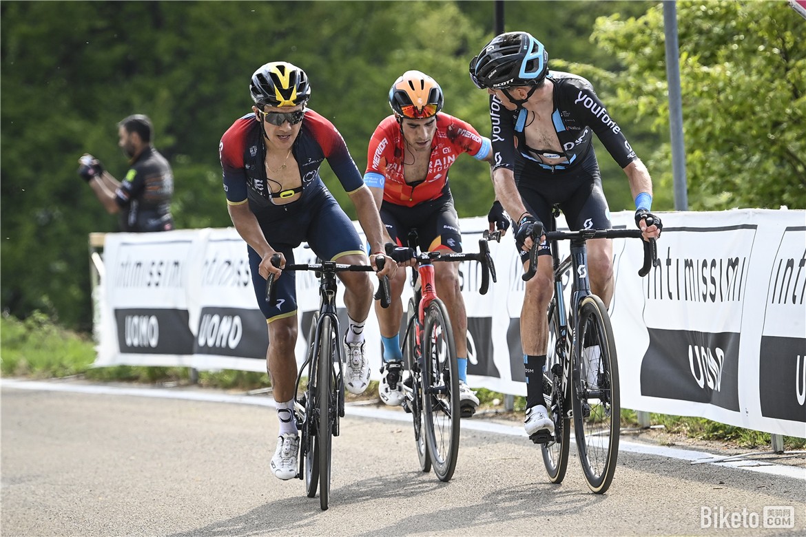 距终点4.6公里,卡拉帕兹在波特身后启动,罗曼·巴代与米克尔·兰达起身响应,三人形成领先集团。阿尔梅达在身后用自己的节奏去追击,在2.3公里带着贾伊·欣德利与波佐维沃再次追上形成六人争冠集团。波佐维沃尝试进攻被贴回后,罗曼·巴代再度进攻,兰达起身防守带出卡拉帕兹。