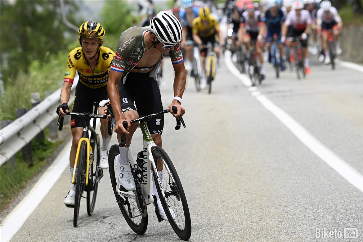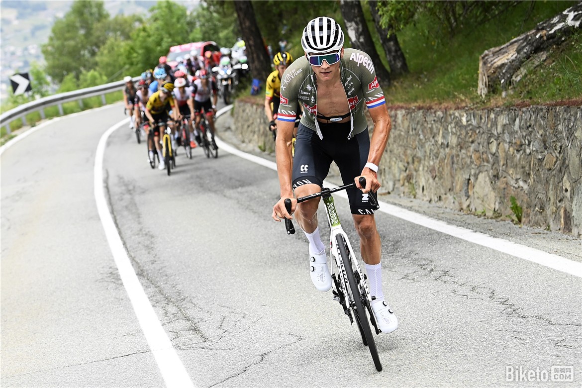 距终点79公里首个一级坡Pila-Les Fleurs爬坡中段,马修·范德普尔做出进攻试探,未能成功。2.5公里后,随着休·卡锡尝试提速,爬坡积分第二位的科恩·鲍曼独自出走,手握相对追击小组一分钟领先优势通过坡顶,砍下40分爬坡积分,重新夺回爬坡王蓝衫。