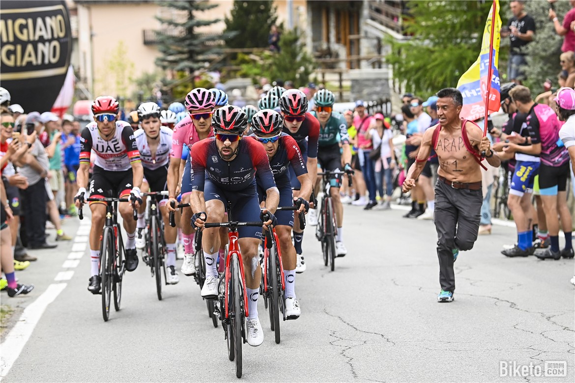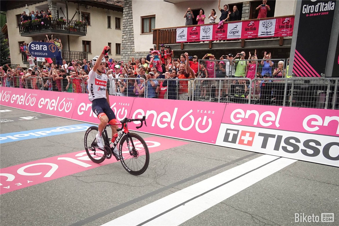 朱利奥·奇科内来自意大利阿布鲁佐大区,继队友胡安·洛佩兹脱下身穿10天的环意粉衫后,他选择自由开火。现役意大利车手包括卡鲁索、波佐维沃、马斯纳达等车手在内,因为法比奥·阿鲁的退役,奇科内是纸面上的尼巴利接班人。本场胜利是他本赛季首胜,也是他在环意赛场第三个单站冠军。第九赛段布洛克豪斯山顶终点放弃总成绩后,他选择积蓄力量。环意第二周节奏飞快消耗巨大,他适时保存体力,在跻身突围集团后展现了爬坡手本性,单飞18公里独自登顶!