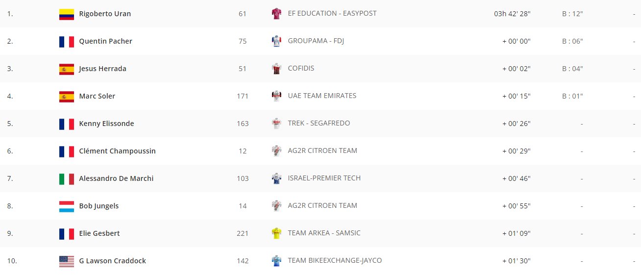 在特图迪亚山较量当中,克拉多克敢打敢拼,一直坚持到最后1公里才被追击集团的乌兰、帕彻、小埃拉达、尚普森追回。不久,尚普森在距离终点前1公里试图进攻打乱对手的爬坡节奏,但被乌兰迅速反应追回。乌兰趁机大力摇车拉开和其他选手的差距,小埃拉达和帕彻尽管努力追击,但无奈实力略逊一筹,最后眼睁睁看着乌兰率先冲线。