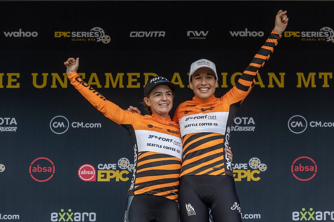 Amy Wakefield 和 Candice Lill (e-FORT.net | SeattleCoffeeCo车队) 夺得了本赛段的冠军并穿上了领骑黄衫。