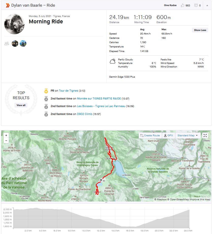 更好的问题可能是:“在休息日骑行中,你爬坡最多的一次是多少?”迪伦·范巴勒(Dylan van Baarle)在他的24km的恢复骑行中大约爬升了600m。