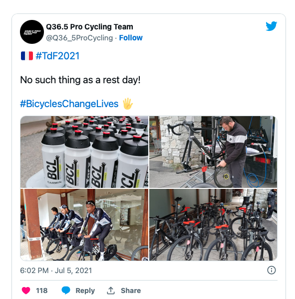 “没有休息日这样的事情。”Qhubeka Next Hash车队在最近的环法期间发推说道。没错,在连续比了一段时间之后,车手们在比赛途中得到应有的休息日,但这些职业车手们还是会和他们的自行车绑在一起。
