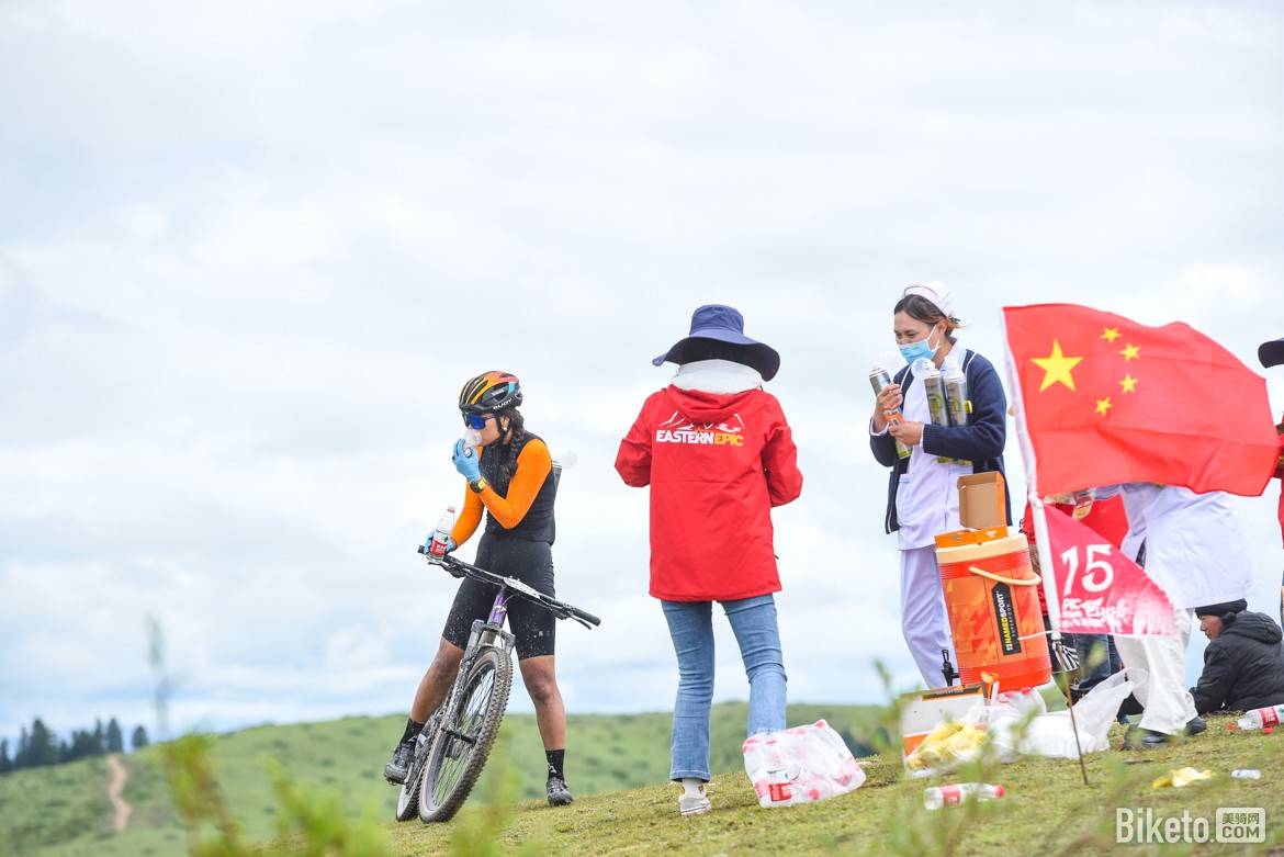 ▲有趣的一幕,孙饶怀在爬坡路段连续超越两人,但是队友还在坡底,只能在山顶补给区等待队友一同到来
