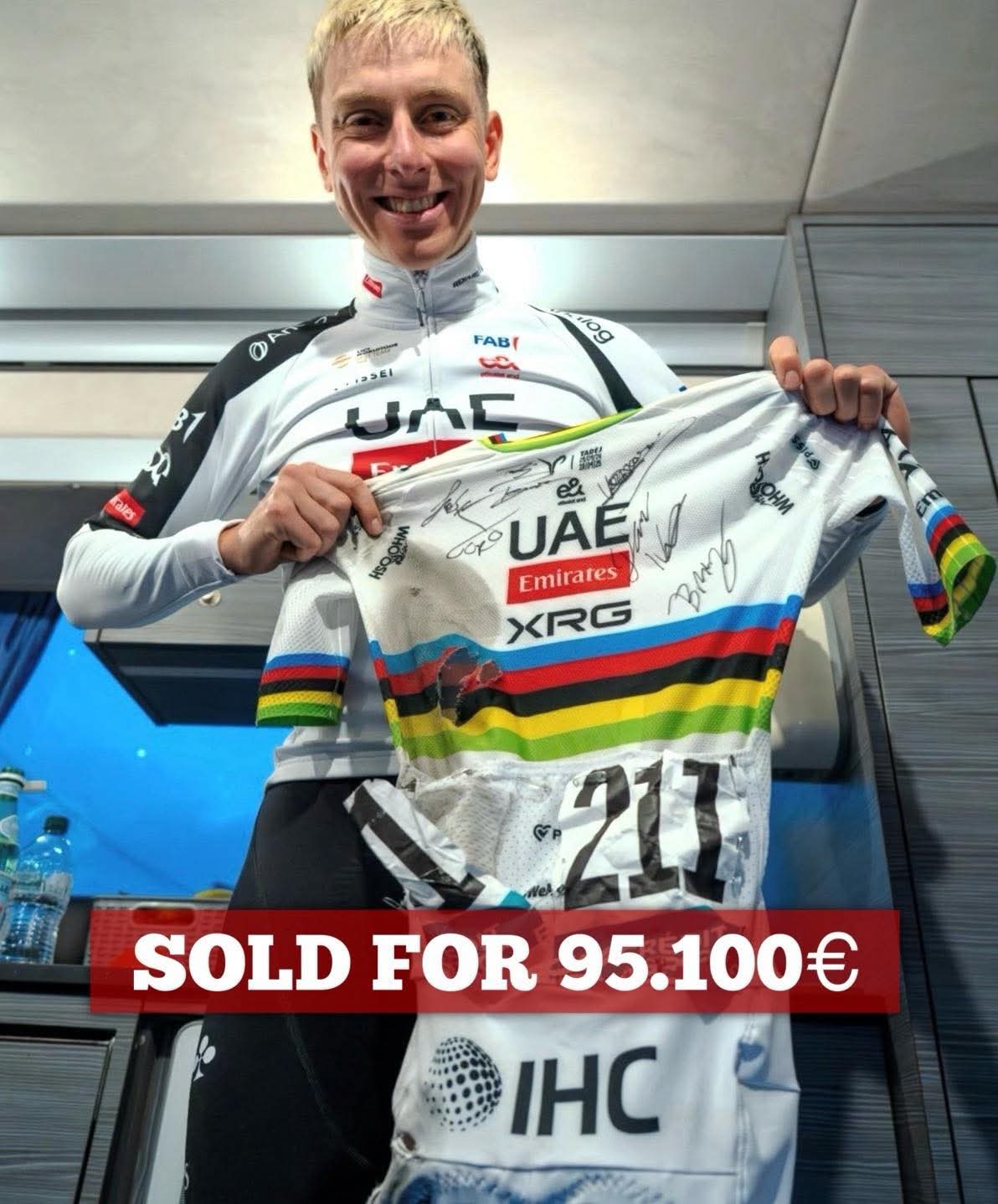 波加查在4月5日环弗兰德斯赛夺冠后,拿出全队签名落场版队服义卖并将款项用于慈善项目。他计划拍卖截止日设在巴黎-鲁贝赛当日,经过11天百余轮竞价最终以95100欧元成交,相较于初始拍卖价1000欧元足足翻了90多倍。