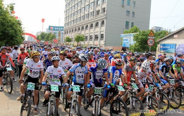 2011年浙江义乌环岩口湖公路自行车赛现场,选手们准备出发