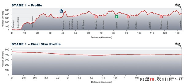 本赛段过后格莱佩尔将披上领骑橙衫。第二赛段的比赛将在明天进行,路线是从Mount Barker到Rostrevor,总长度116.5KM。这个赛段在最后6KM处有一个1级爬坡点,下坡后才会进入平路冲刺。预计比赛最后10KM的变数很大,对不擅长爬坡的纯平路冲刺手尤其艰难。