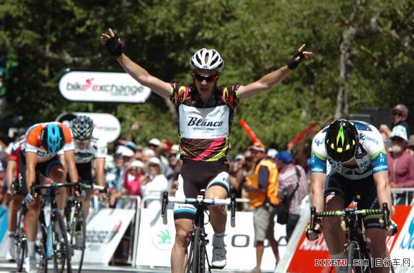 第三赛段的胜利者是Tom-Jelte Slagter!没听说过他吗?他来自荷兰Blanco车队(前身是拉波银行车队),今年23岁,是2010年度的荷兰U23公路大组赛国家冠军。这站比赛之前,他是本届环澳赛“最佳新人领骑衫”的保有者,总成绩排名第五。今天的冠军,是他职业生涯第一胜!