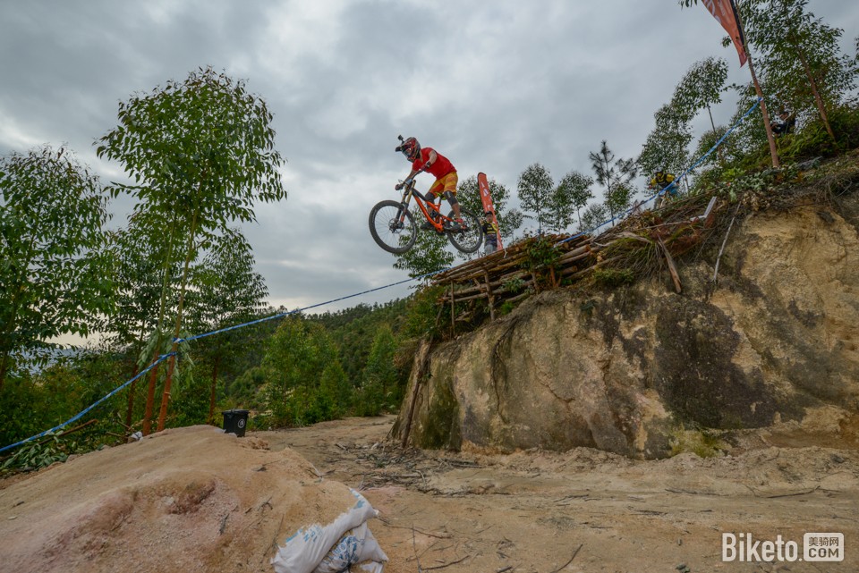 这个垂直的坡并不难,车手先刹车减速,再骑下来就可以。但对于小编来说,这个坡下得尴尬,过程用省略号代替......