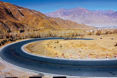 弯曲的公路(图片来源:西藏旅游杂志摄影:雷冰、张鹰、茜珞、任西)