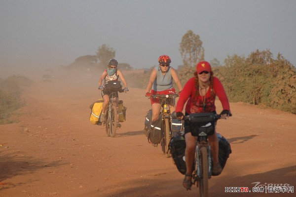莫埃尔 欧 苏利文对此也有同感。她最近在柬埔寨山区骑行四天,结果一路上灾祸连连——从过不去的河,无法骑行的路,一直到坏了的车,最终连人也受了伤。她参加的是由四人组成的带导游的骑行,在旅途中他们不得不调换车把,扭曲的链条和变速线,因为这些都被泥土塞住了。他们把自己连同自行车悬在高空吊索上穿过水流湍急的河流。由于雨季开始得早,他们不得不对付爬在雨布和吊床上的水蛭。起伏坑洼的山地把其中一辆自行车的避震器震坏了,车手只能减速。另一位车手在穿过一处瀑布时脚受了伤,不得不中途退出骑行。
