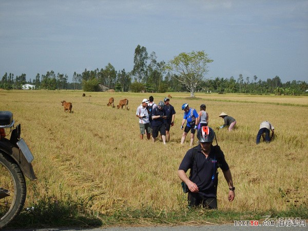 你有可能骑上十五分钟的车,就发现自己已经从繁忙的金边来到了被稻田所包围的小村庄。本地的小孩子从家里奔出来对骑手们说哈罗,在他们笑着挥手的时候,常常还会加上一句,“你叫什么名字?”