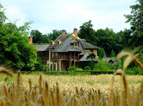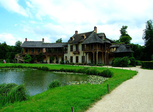 就在运河的右端的尽头处,苍翠的树林背后就是大小特里亚农宫。外面还围绕着路易十六为王后玛丽.安托奈特修建的瑞士农庄,包括茅屋、磨坊、羊圈,厌倦了宫廷生活繁文缛节的安托奈特常扮作乡间牧羊女在此消遣。