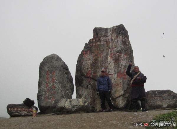 黄河长江分水岭的石刻,一位藏族大叔在洒什么,好像是祈福的东西不怎么懂,跑上去合个影