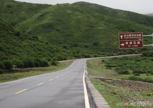 这个坡上去就是黄河长江分水岭,据说那个山峰一边的水往黄河流一边往长江,爬坡的时候看到山上的泥土慢慢的滑下来生怕是泥石流一个劲的踩。