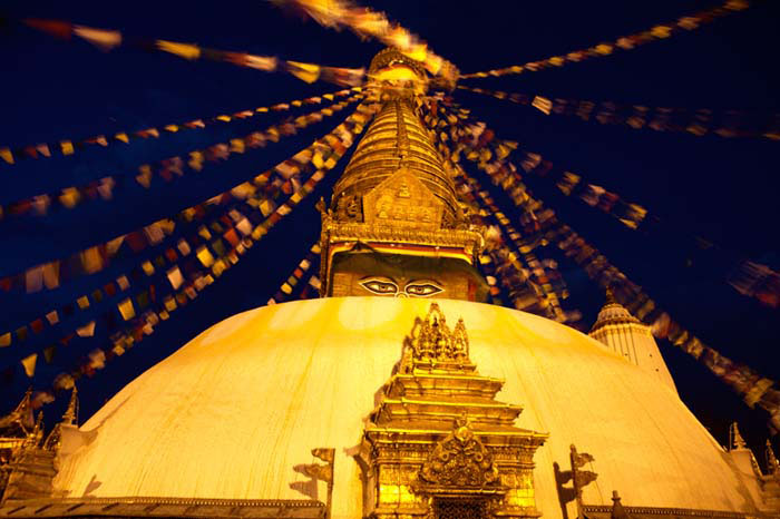 在找旅馆的过程中,我们碰到一群穿着深红色衣服的僧侣。他们赞许地向我们的自行车点点头。就像很多我们遇到的尼泊尔人一样,他们摁摁我们的轮胎,感觉很了不起。我真庆幸今早给轮胎打了气。