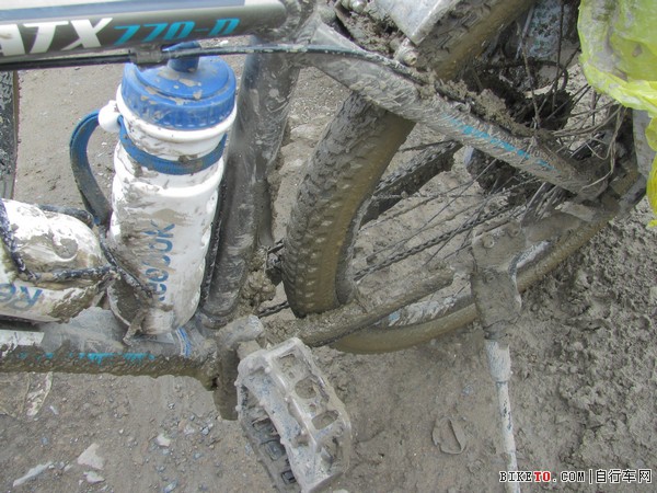 刚开始骑烂泥路的时候觉得并没像昨天那么难骑,估计是下雨的原因,泥巴变成泥巴酱,不像昨天的泥巴那么黏,车轮可以着地不打滑,这雨就像一把双刃剑,淋湿了我们的身体,也给了我们骑行的希望。