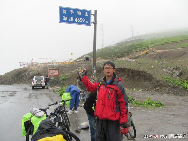 快到垭口的时候有两个美女蹲在路边,我经过的时候被她们叫住了,她们看我没穿雨衣,要送一套雨衣给我,刚好我的雨衣磨破了,就不客气的跟她们收下了,回头想想怎么就不跟她们要个联系方式之类的,qq也好啊,是吧?