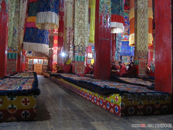 下午和JB唯、一折以及许哥一同四个人走路去长青春科尔寺,理塘算是人杰地灵,这里诞生了很多活佛和达赖,在长青春科尔寺里面可以感受到浓烈的佛教氛围,在大殿里面有一群喇嘛在念经文,到了我的耳边像是蜜蜂嗡嗡嗡的声音,听得我想睡觉,挺多年轻点的喇嘛坐在那里漫不经心地和我们互相打量着,在他们嘴里念出来的不是经文,而是对回到现实生活享受物欲的渴望,对于他们,念佛修行已经成为他们不想去履行的一种形式,西方文明和汉族文化的入侵多多少少对这虔诚的佛教圣地带来了影响,我不禁在想,坐在这里面的喇嘛究竟有多少个是真正在修身养性的?