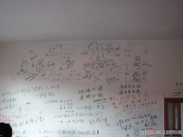 推了大约4公里左右,我们在一个骑友那里借来了链条油,加完油的车子才勉强可以骑,不过很辛苦,我们都不怎么敢用力,怕万一断了链条就麻烦了。到相克宗村的时候已经是晚上8点钟,体力基本耗尽,天还下起了小雨, 此时此刻最想做的事情不是吃饭,而是洗个热水澡,然后上床睡觉。