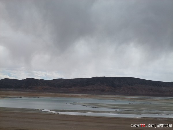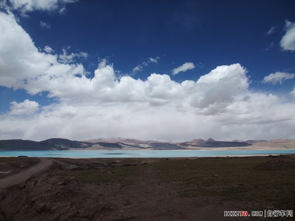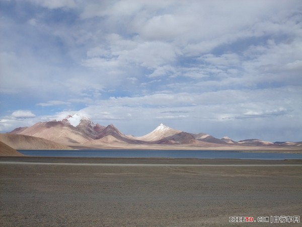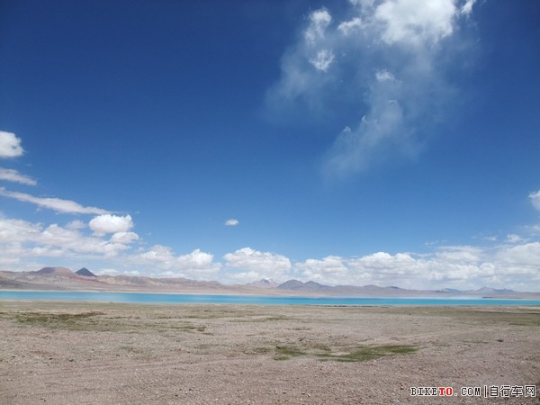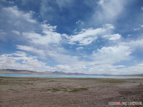 从雪山脚下掠过,然后就看到龙木错,追上了老李他们,一起在龙木错旁边停下来休息吃东西。龙木错的湖水颜色显得多变,时而偏白,时而淡蓝,倏尔深碧,蓝天白云之下,让人不忍离去。