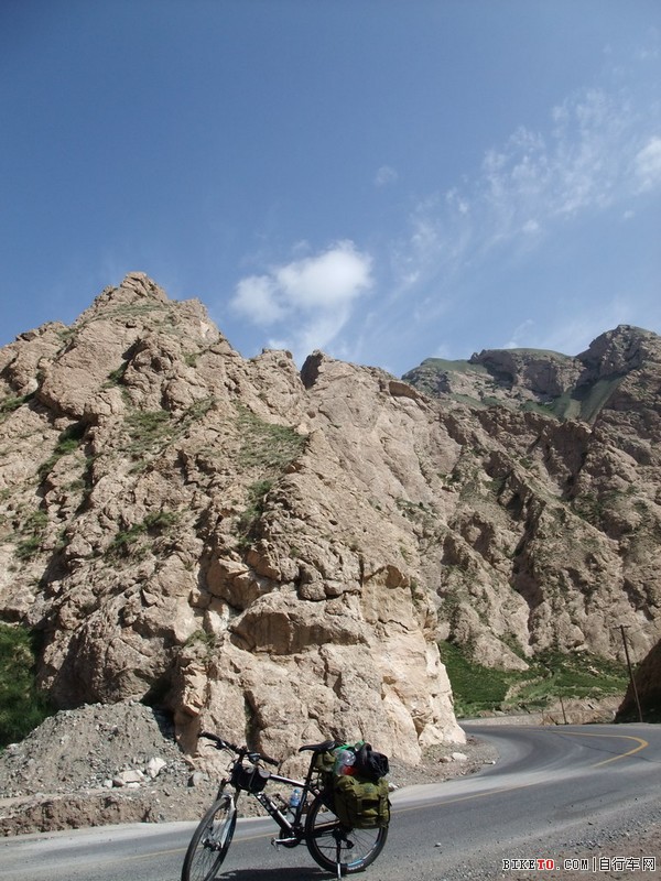 下到谷底后超强的逆风侧面吹来,第一次碰到这么强的侧风,虽然是下坡,但还得用力踩,甚至后来踩都不能踩,只能推——推着下坡。远远的来了辆大货,看它过来,我连忙扶稳车,大货从我身边过的时候,挡住了侧风,而它立即开走,风好像一下强大几倍,连人带车一下被吹到路边的沟里。费了很大力气才从沟里爬出来,不敢怠慢,尽力把身体前倾,压住风,缓缓的推车向前,即使这样,也被逆风吹得紧紧靠在路的最边缘上,随时可能再次被吹到路边沟里。