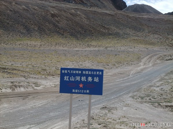 下坡后继续搓板缓上,路过红山河机务站的路牌,海拔仍然有5120米,这里右边有条岔路,通往机务站。12点多的时候,爬上这个无名垭口。